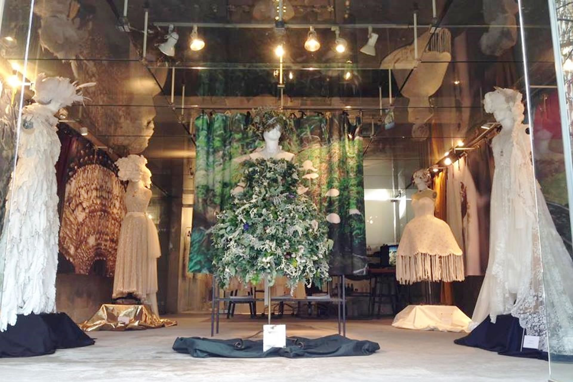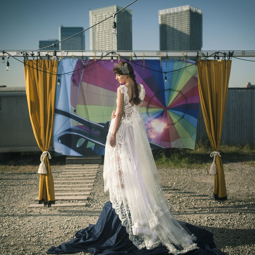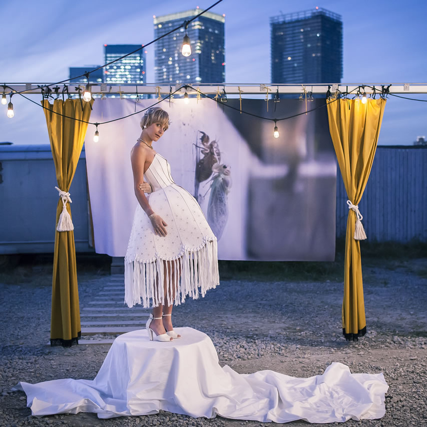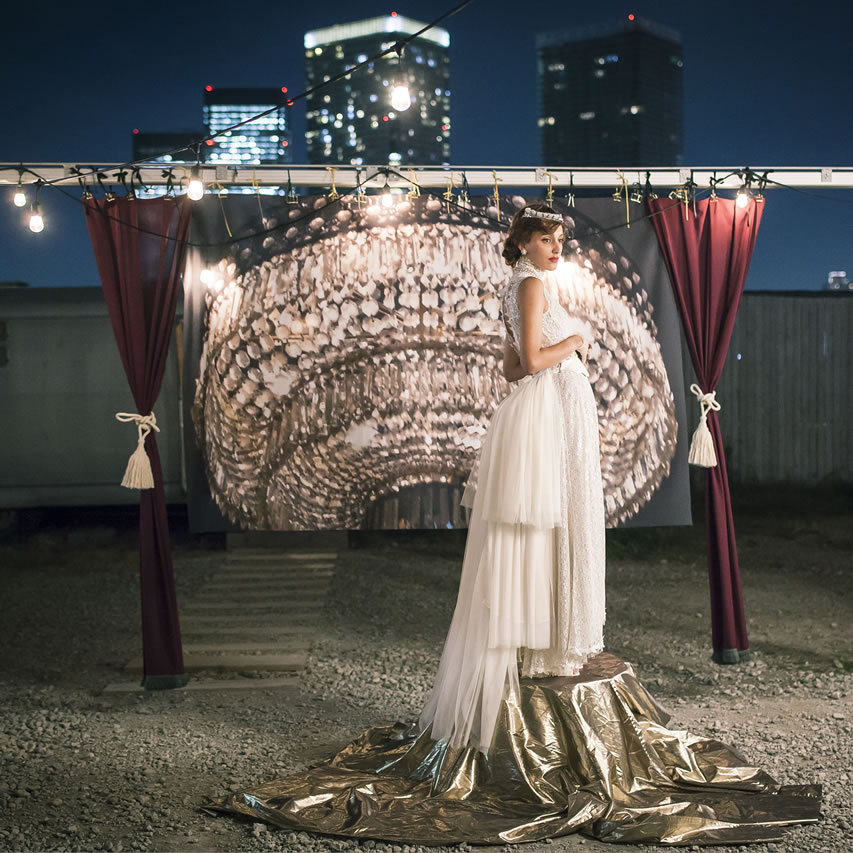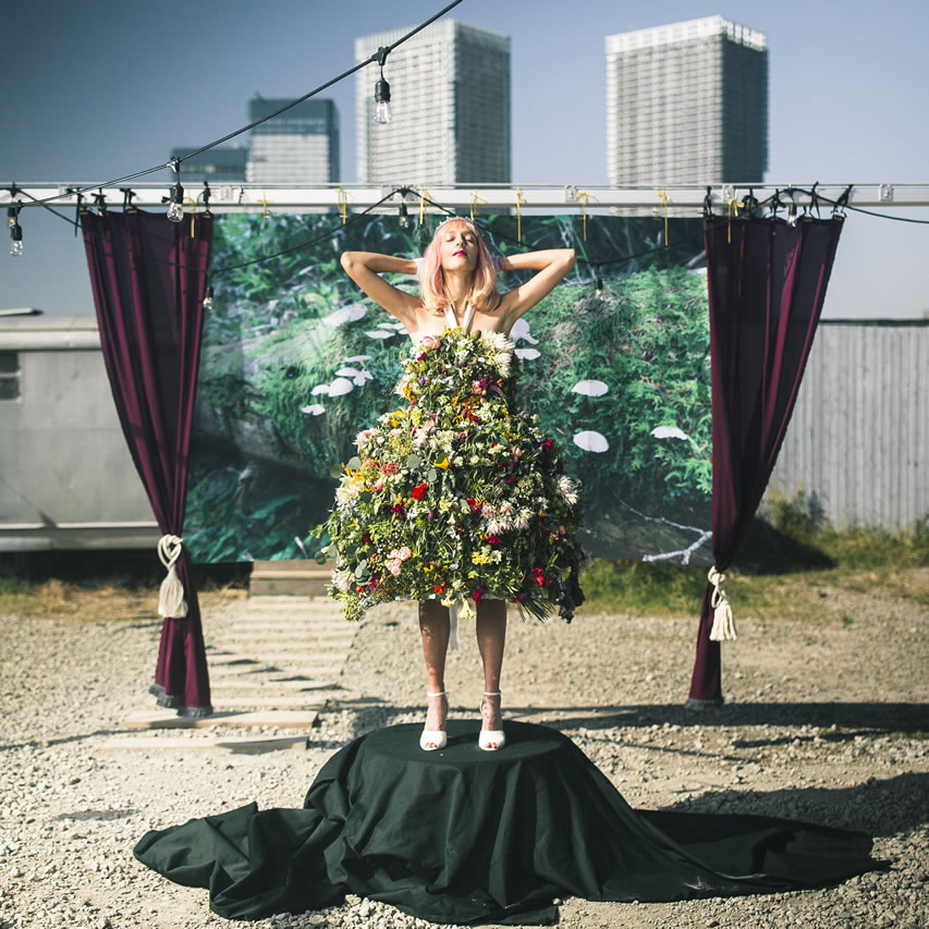 一日の為だけの生花のドレス、沢山の想いを組み合わせたドレス、天候に左右されないドレス、再生した革で製作したドレス、様々なアイテムを組み合わせて一着となるドレス。