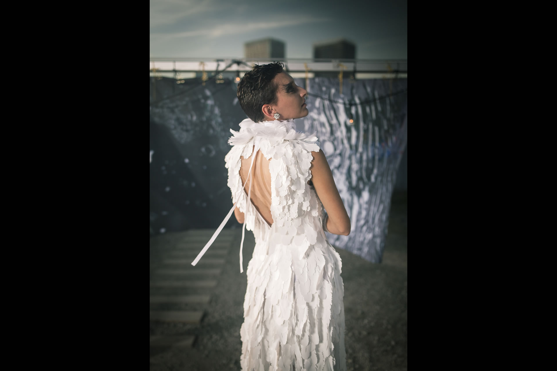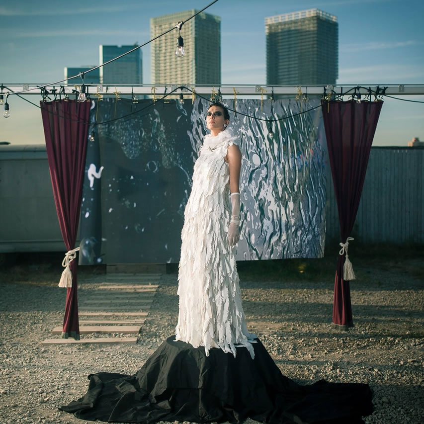 リサイクル=生まれ変わる=新しい人生の出発をイメージし製作したドレスです。