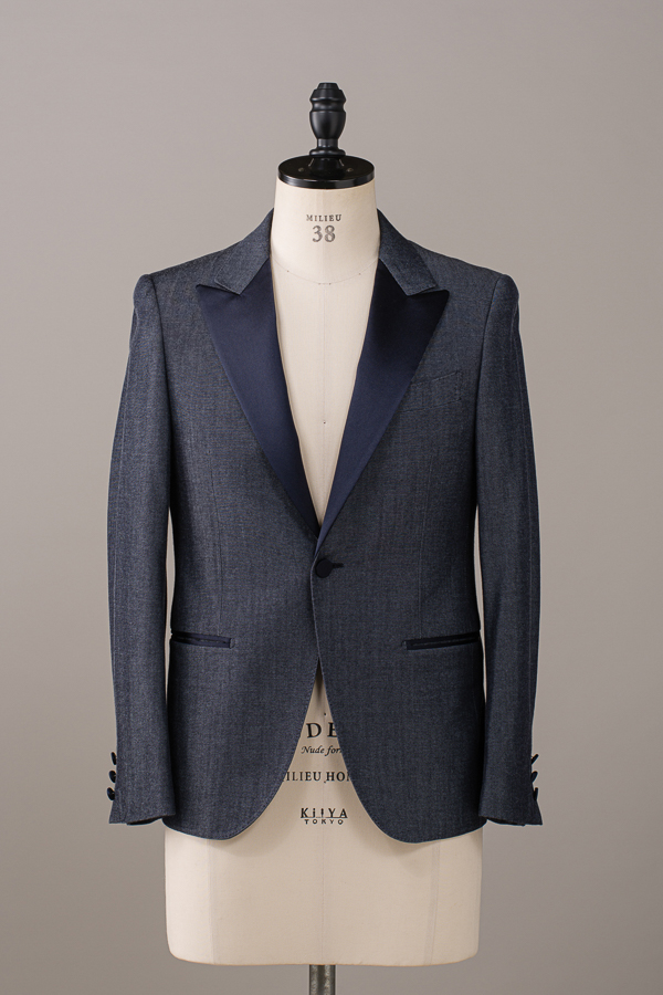 [ ウールデニム1つ釦ピークドラペルジャケット ]