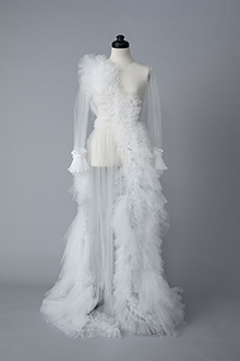 ウエディングドレスの概念にとらわれず、今の生きたファッションを落とし込んだレンタルドレスは、アトリエにて1点1点製作しております。